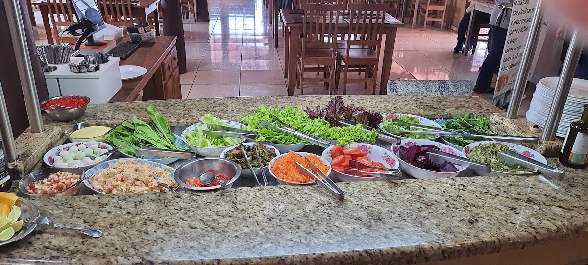 Self service, comida mineira muito saborosa. Torresmo, tutu de feijão entre outros. Agrada criança também, por oferecer peito de frango empanado, batata frita, salada variada. Sobremesas como pudim de leite, manjar, brigadeiro de colher, goiabada, doce de leite, queijo.... Localizado próximo ao portal de Gonçalves.